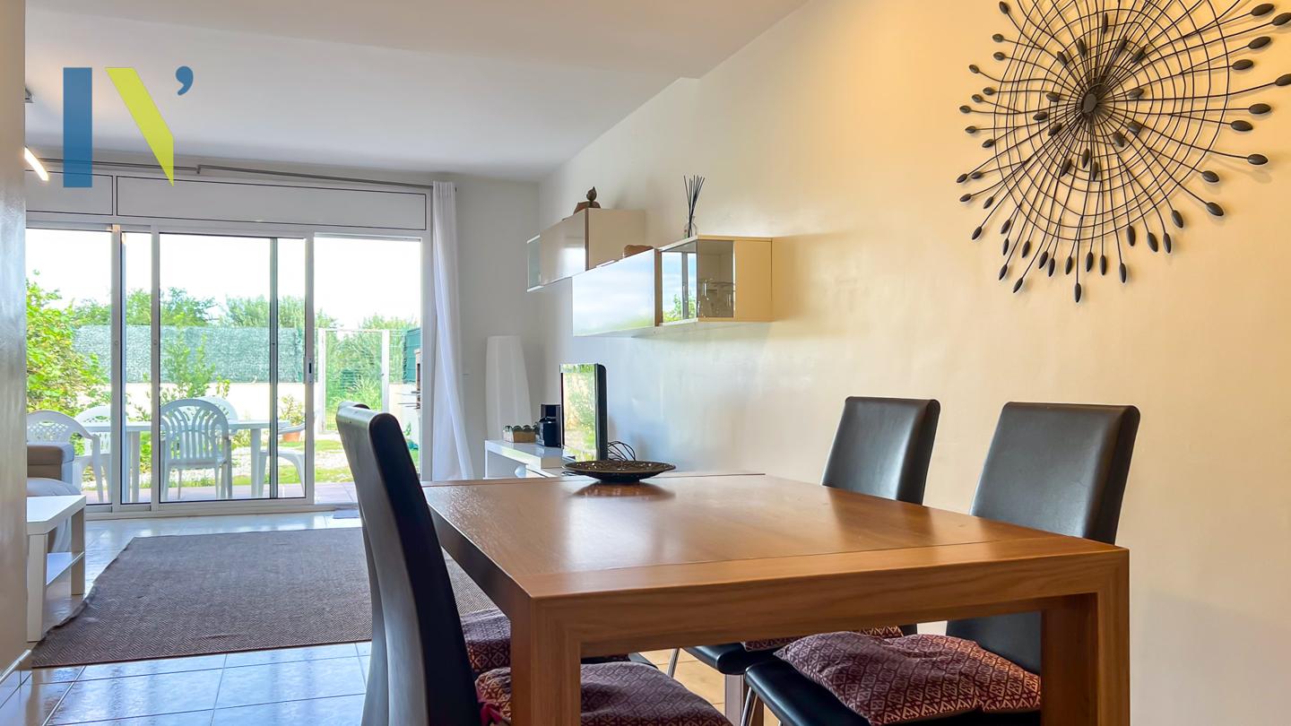 On the ground floor, you’ll find a spacious garage (yes, you can finally stop driving around looking for a parking spot), a practical kitchen for everyday use, a bathroom, and a generous living-dining room with direct access to the garden. The garden, by the way, has a barbecue — perfect for those long meals that start at one o’clock and end when the sun goes down.